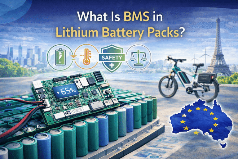 Learn what a BMS (Battery Management System) is in lithium battery packs, how it protects and manages battery performance, and why it is critical for safety, lifespan, and reliability in European e-bike applications.